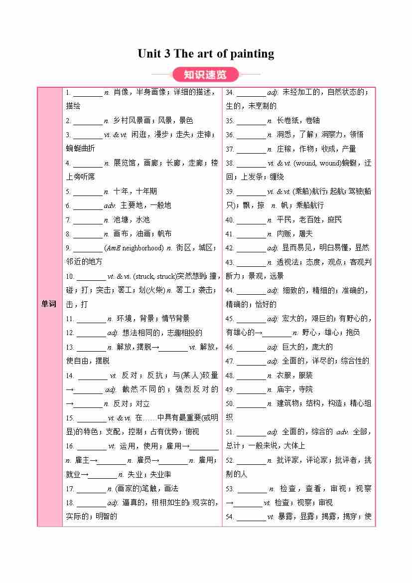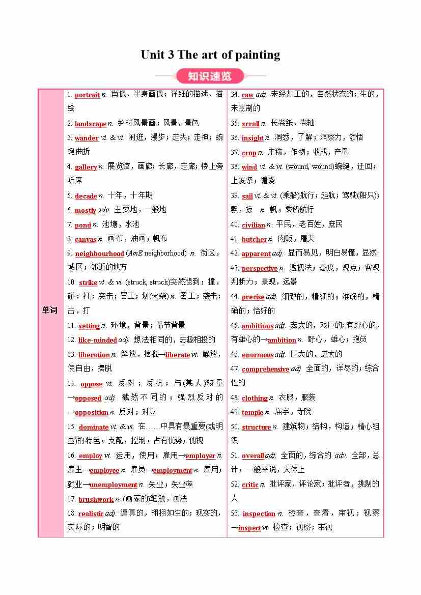 Unit 3 The art of painting (知识清单)(答案版)
