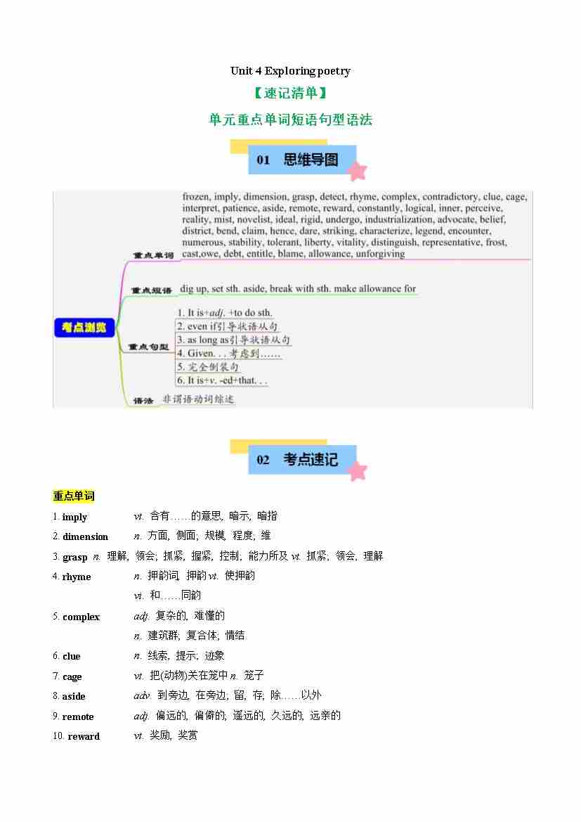Unit 4 Exploring poetry(知识清单)(学生版)