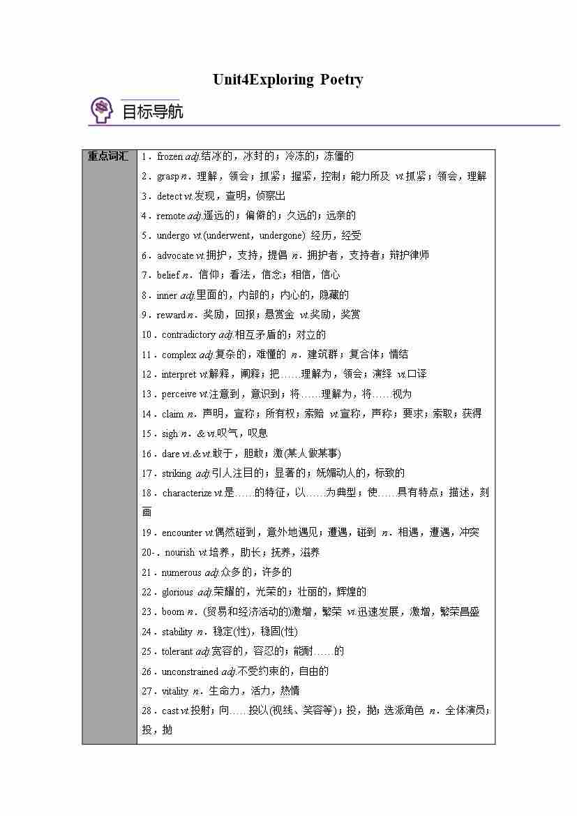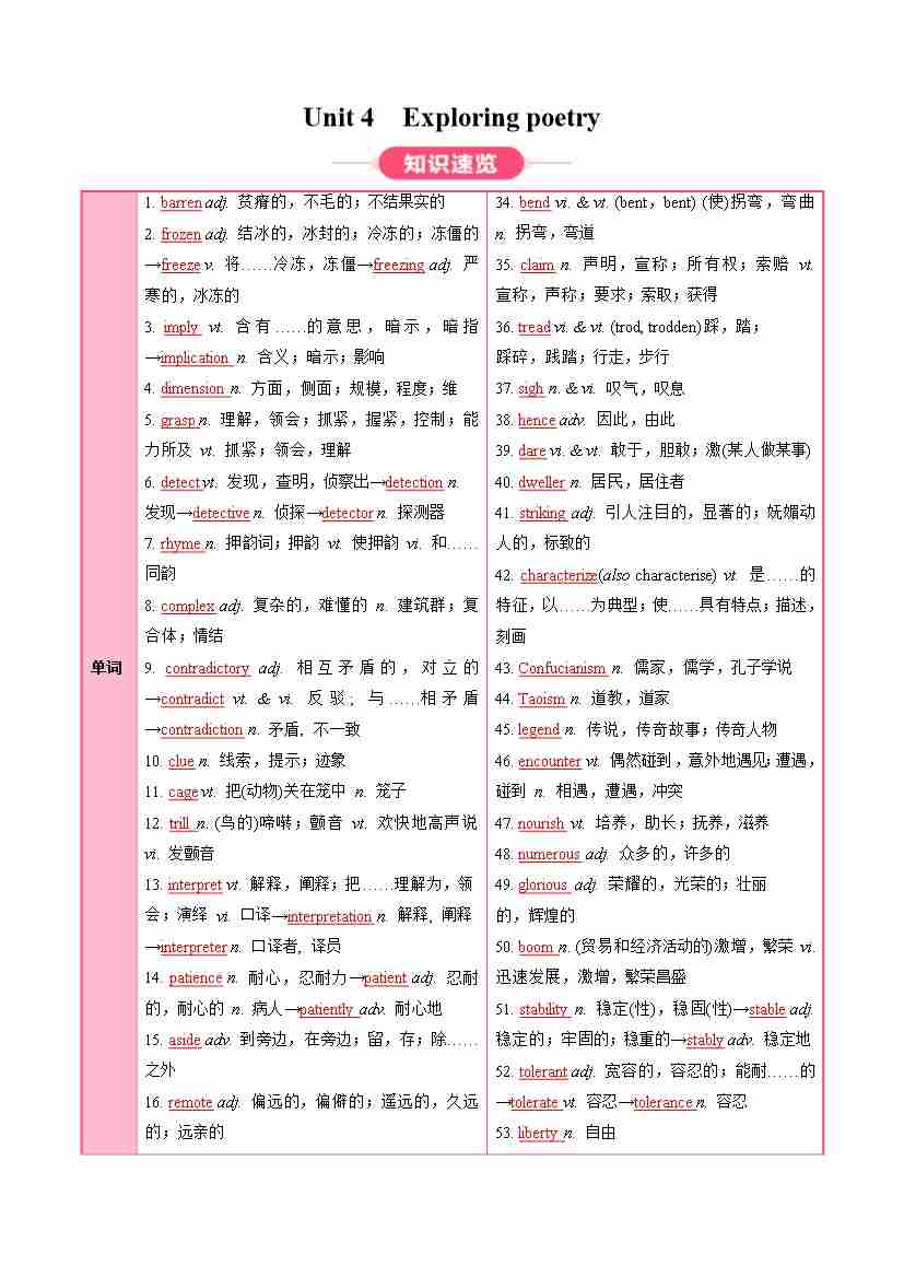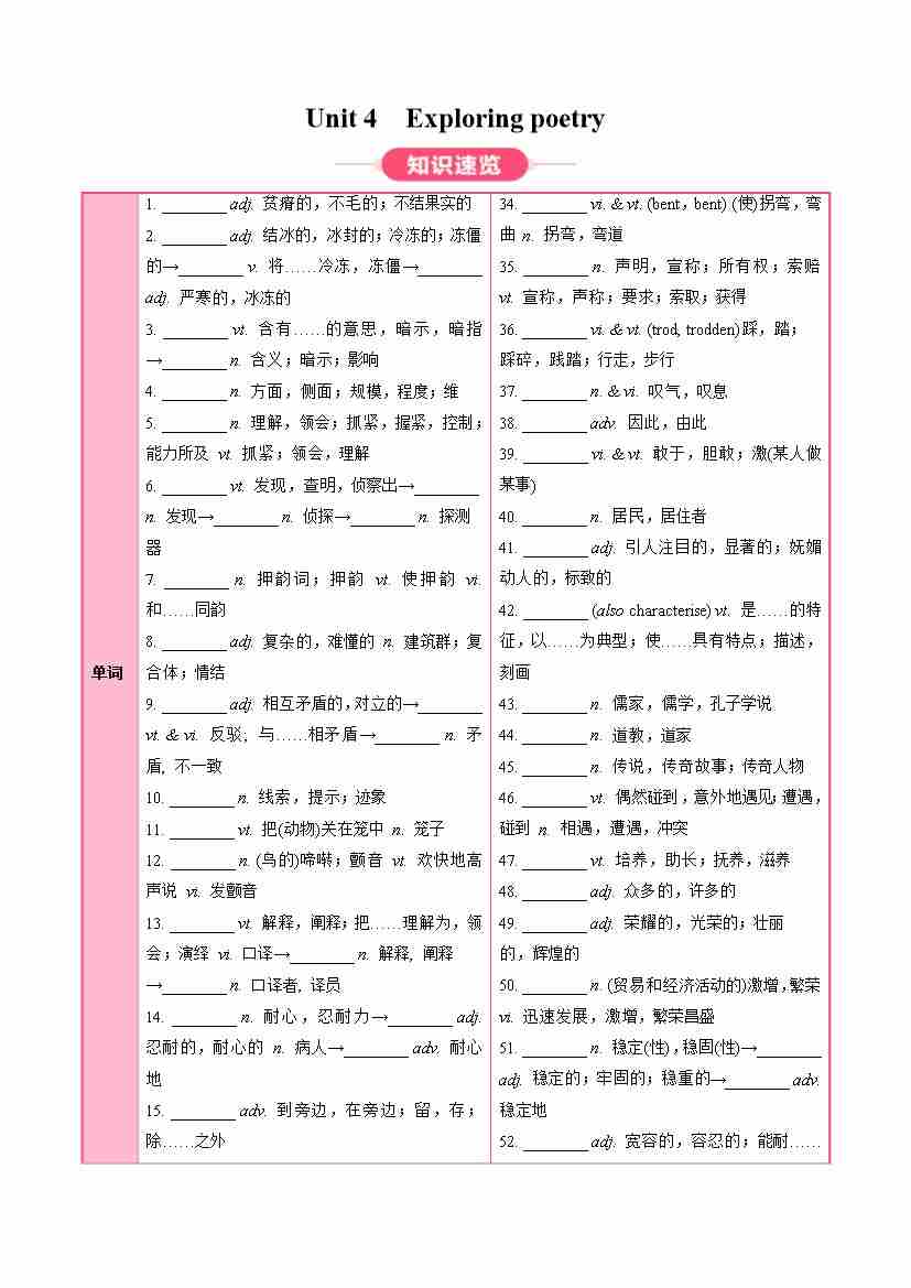 Unit 4 Exploring poetry(知识清单)(教师版)