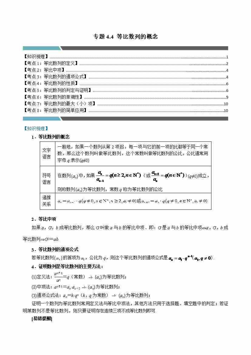 专题4.4 等比数列的概念(8类必考点)(人教A版2019选择性必修第二册)(学生版)