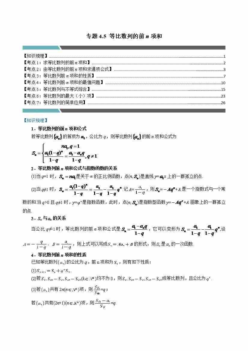专题4.5 等比数列的前n项和(7类必考点)(人教A版2019选择性必修第二册)(教师版)