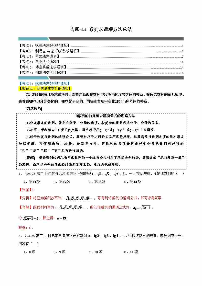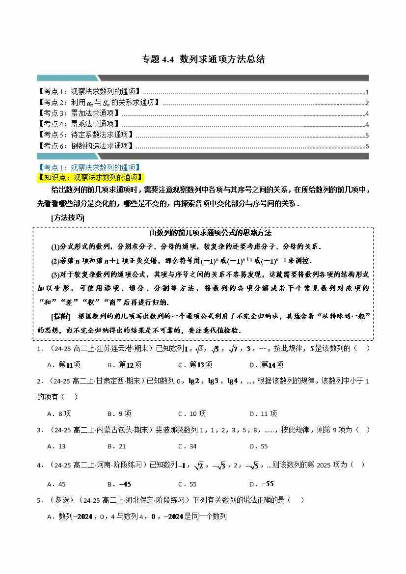 专题4.6 数列求通项方法总结(6类必考点)(人教A版2019选择性必修第二册)(学生版)