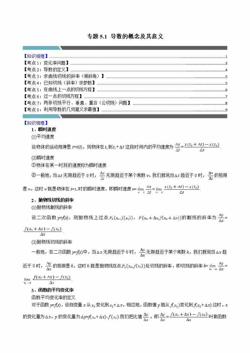 专题5.1 导数的概念及其意义(9类必考点)(人教A版2019选择性必修第二册)(学生版)