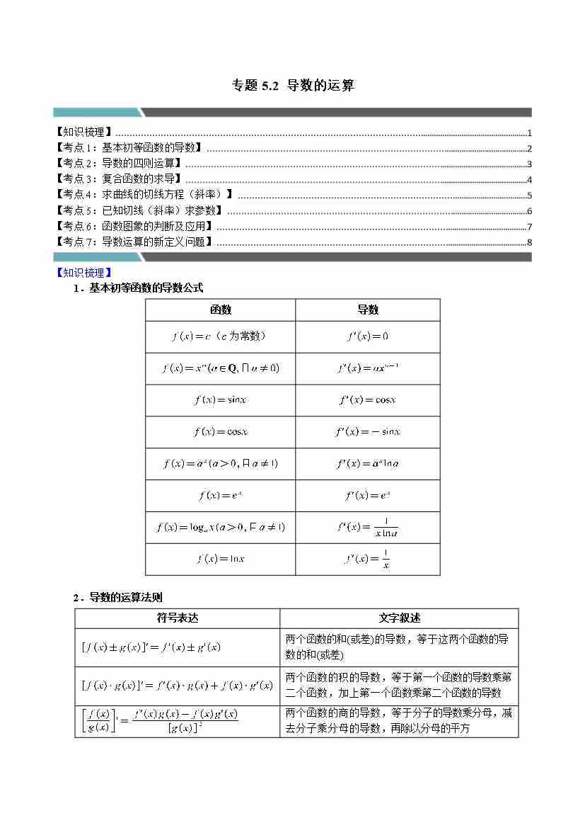 专题5.2 导数的运算(7类必考点)(人教A版2019选择性必修第二册)(学生版)