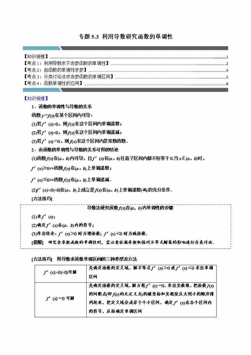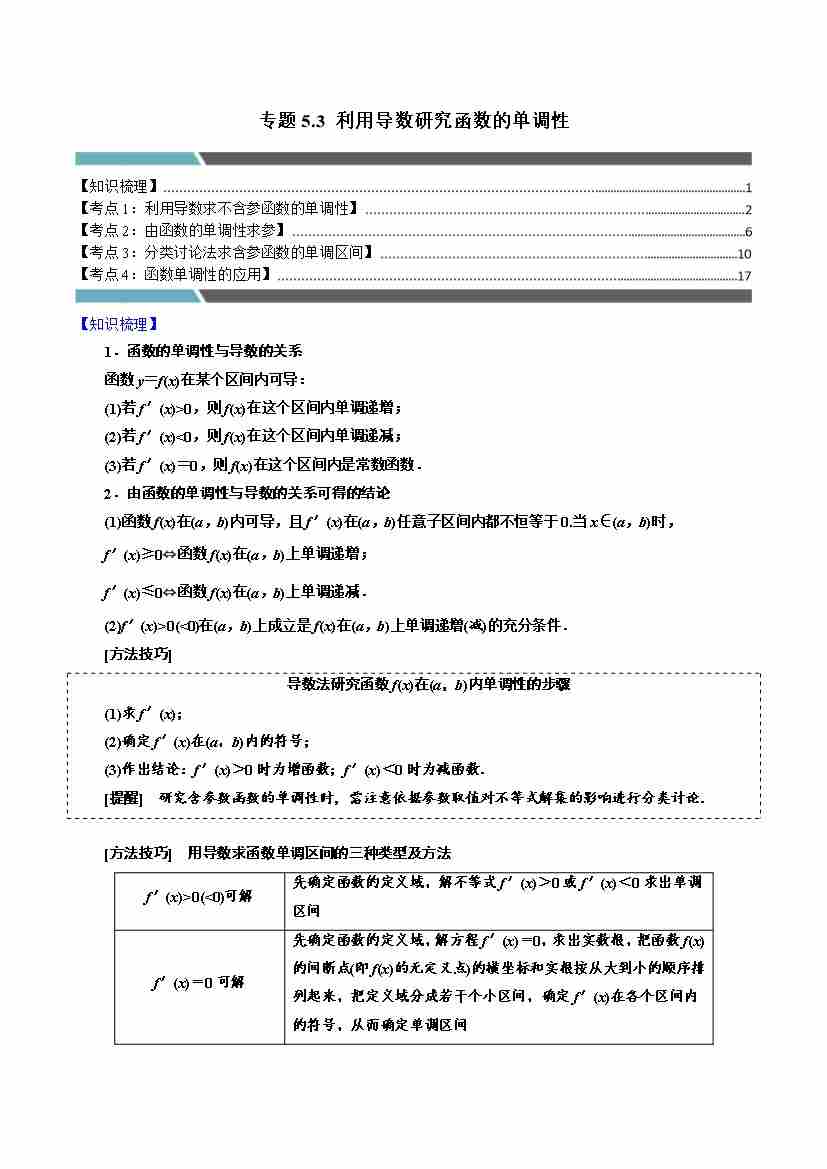 专题5.3 利用导数研究函数的单调性(4类必考点)(人教A版2019选择性必修第二册)(教师版)