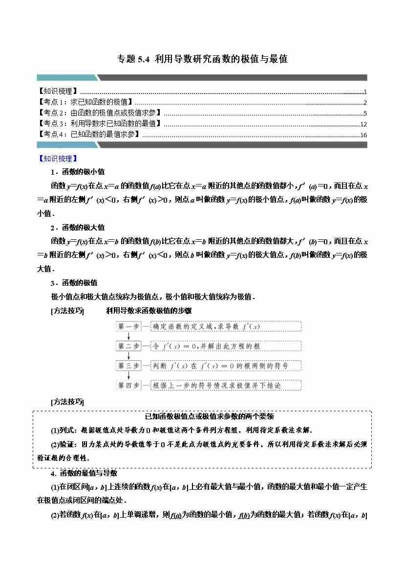 专题5.4 利用导数研究函数的极值与最值(4类必考点)(人教A版2019选择性必修第二册)(教师版)