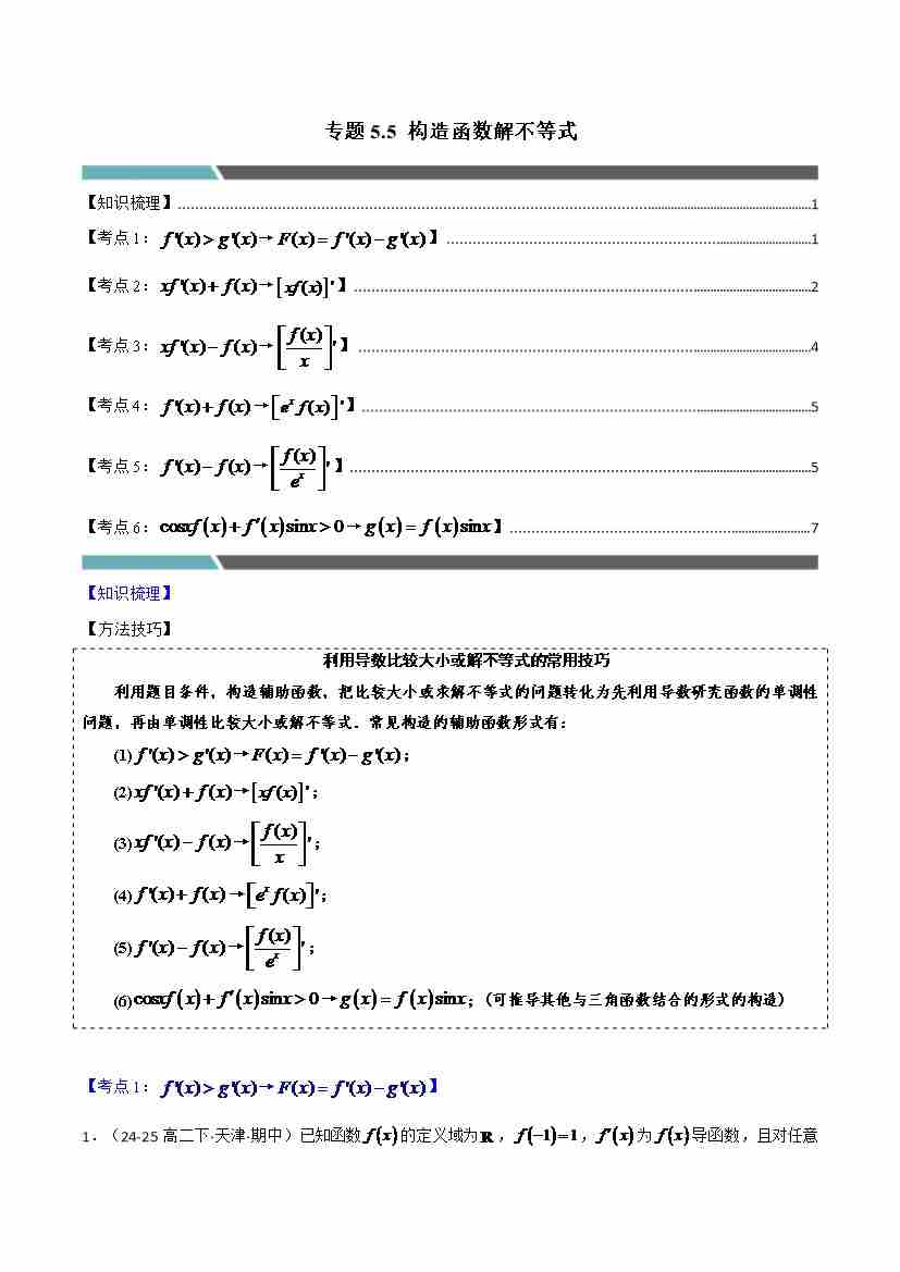 专题5.5 构造函数解不等式(6类必考点)(人教A版2019选择性必修第二册)(学生版)