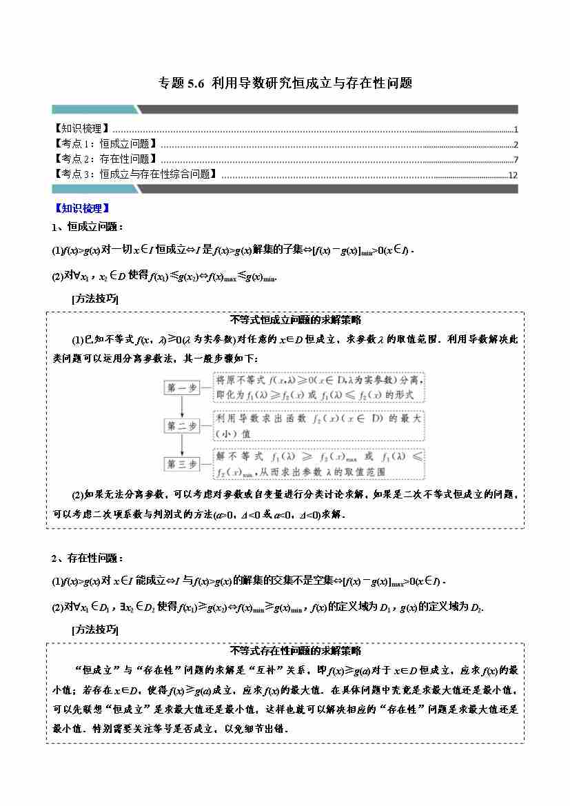 专题5.6 利用导数研究恒成立与存在性问题(3类必考点)(人教A版2019选择性必修第二册)(学生版)