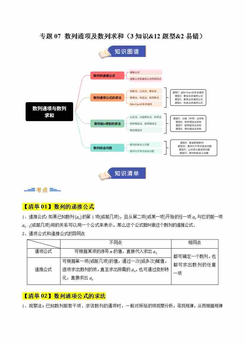 专题07 数列通项及数列求和(期末复习知识清单)(解析版)