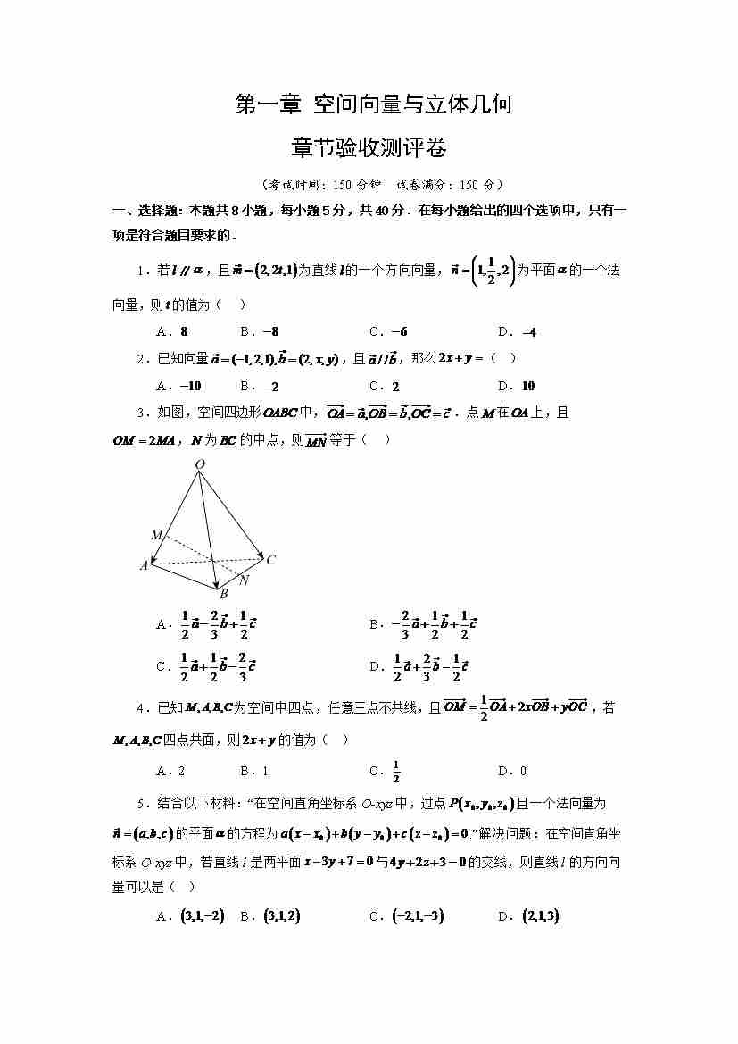 第12讲 第一章 空间向量与立体几何 章节验收测评卷(学生版)