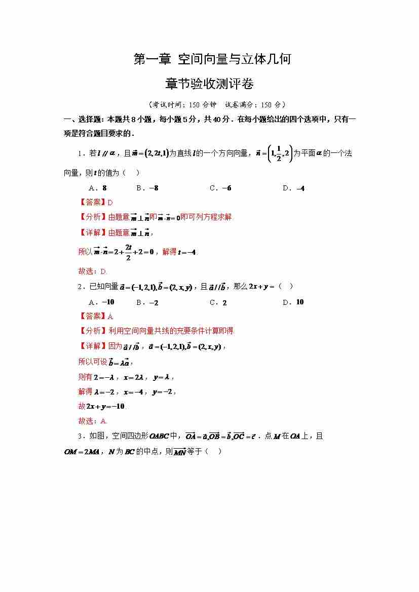第12讲 第一章 空间向量与立体几何 章节验收测评卷(教师版)
