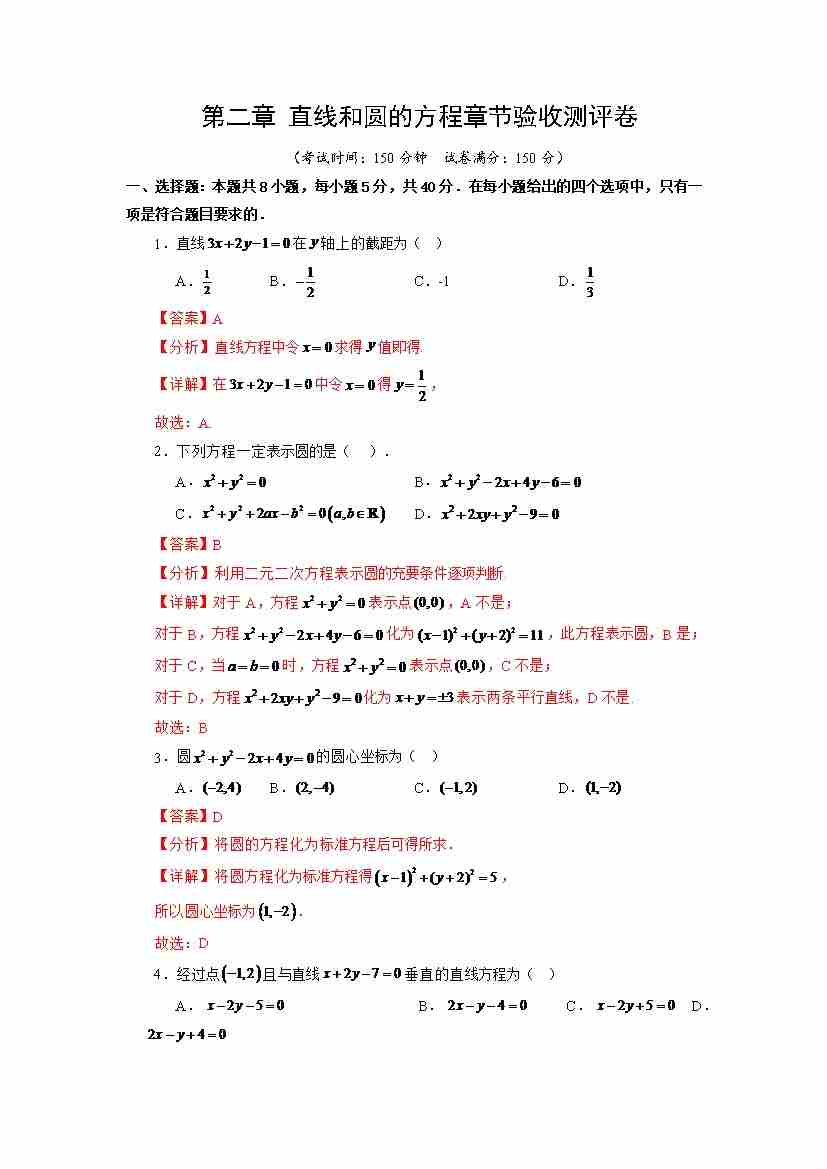 第12讲 第二章 直线和圆的方程 章节验收测评卷(教师版)
