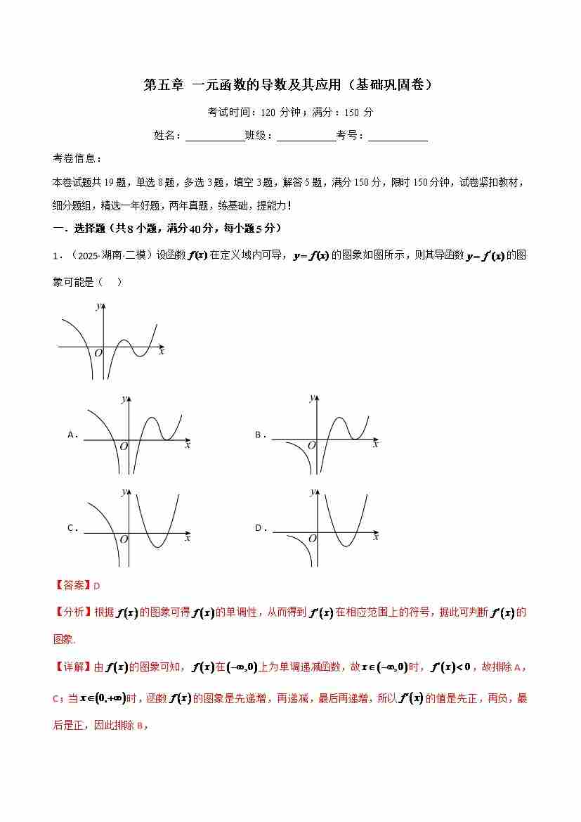第五章 一元函数的导数及其应用(基础巩固卷)(人教A版2019选择性必修第二册)(教师版)