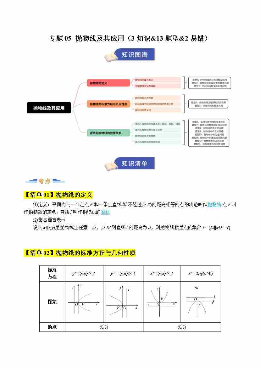 专题05 抛物线及其应用(期末复习知识清单)(原卷版)