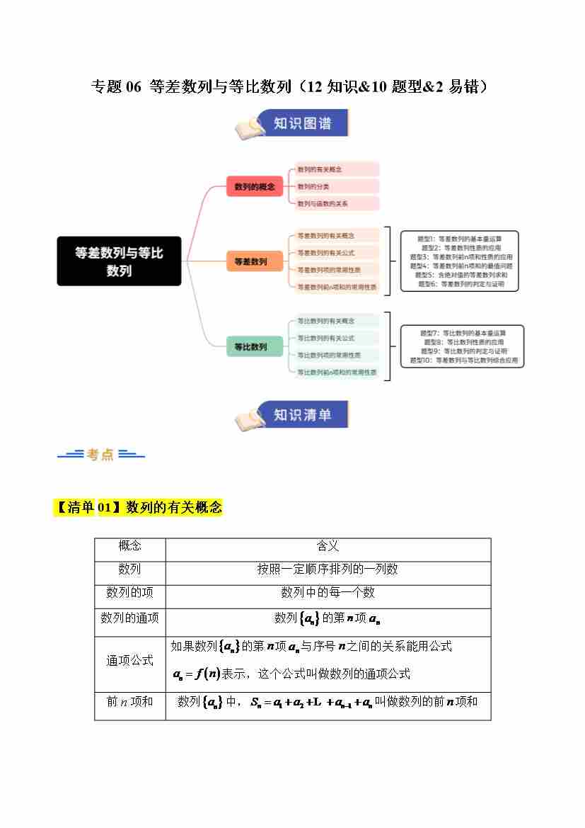 专题06 等差数列与等比数列(期末复习知识清单)(原卷版)