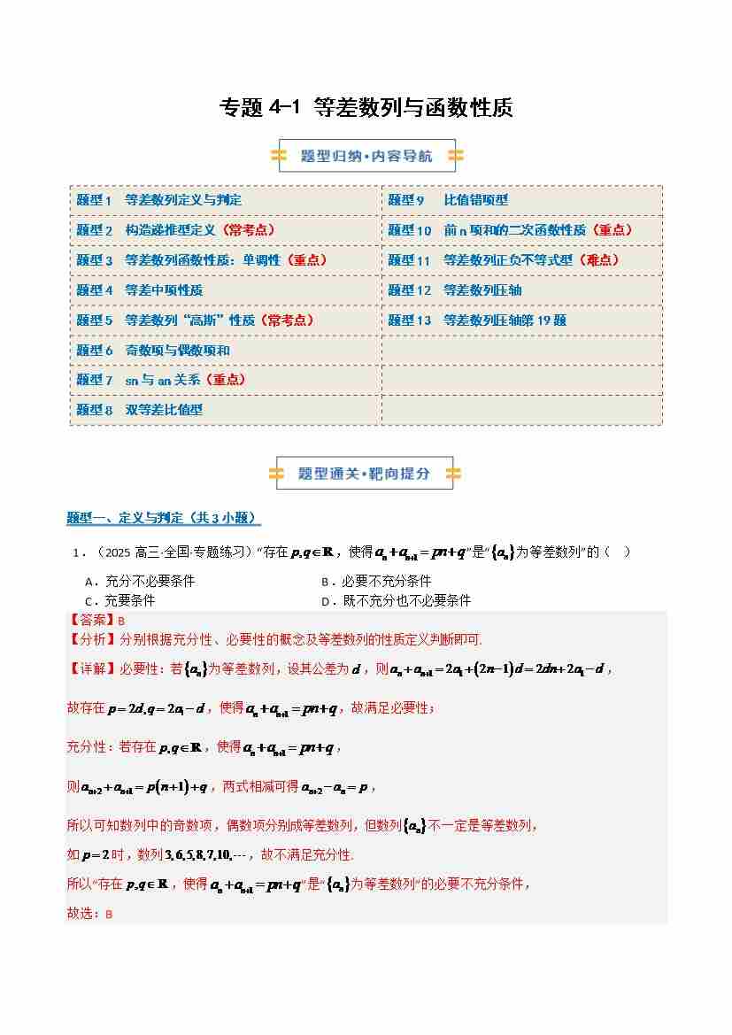 专题4-1 等差数列及函数性质13题型(期末复习专项训练)(解析版)