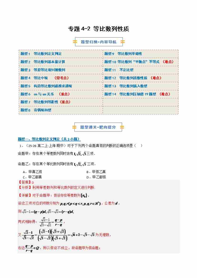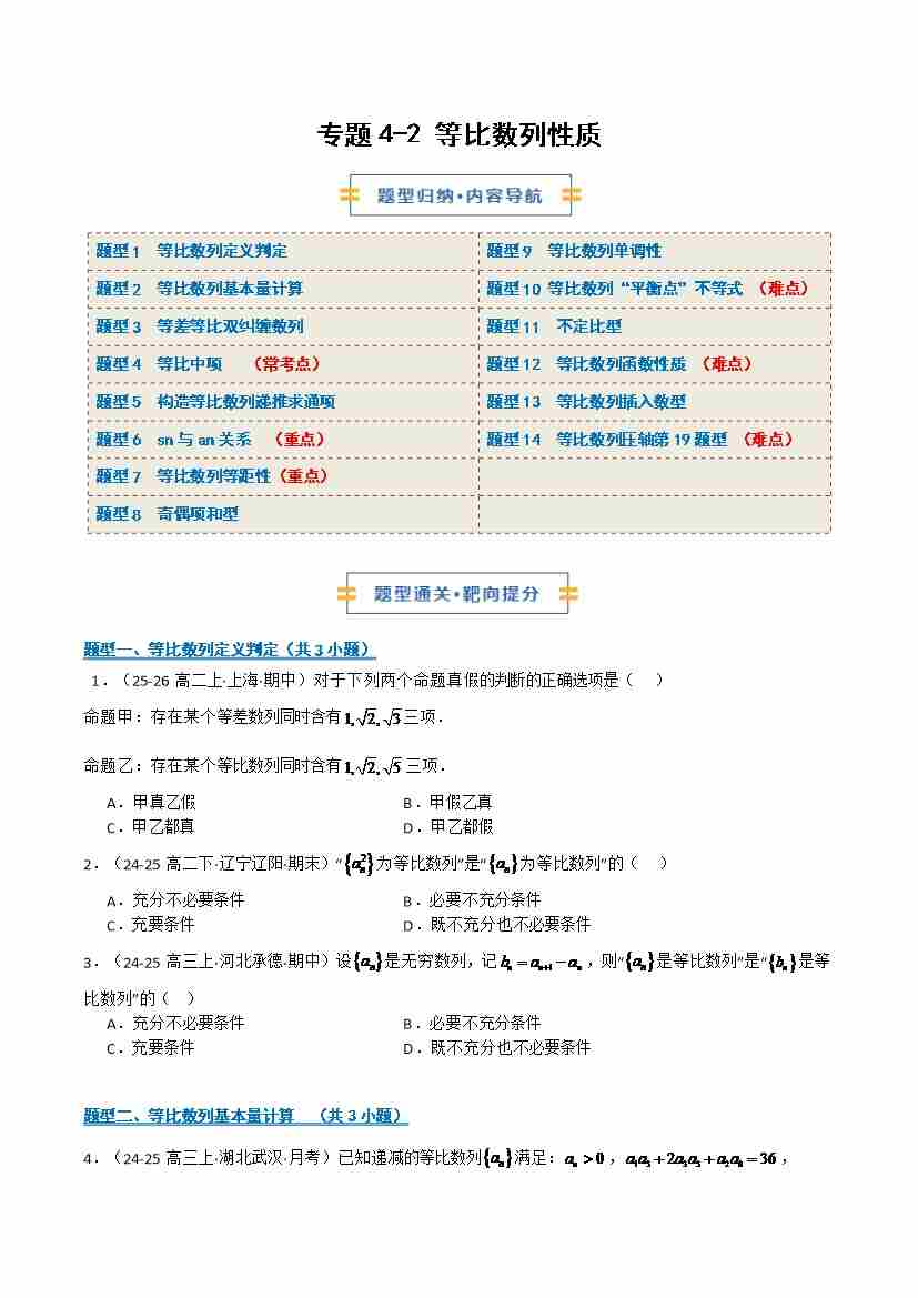 专题4-2 等比数列性质(期末复习专项训练)(原卷版)