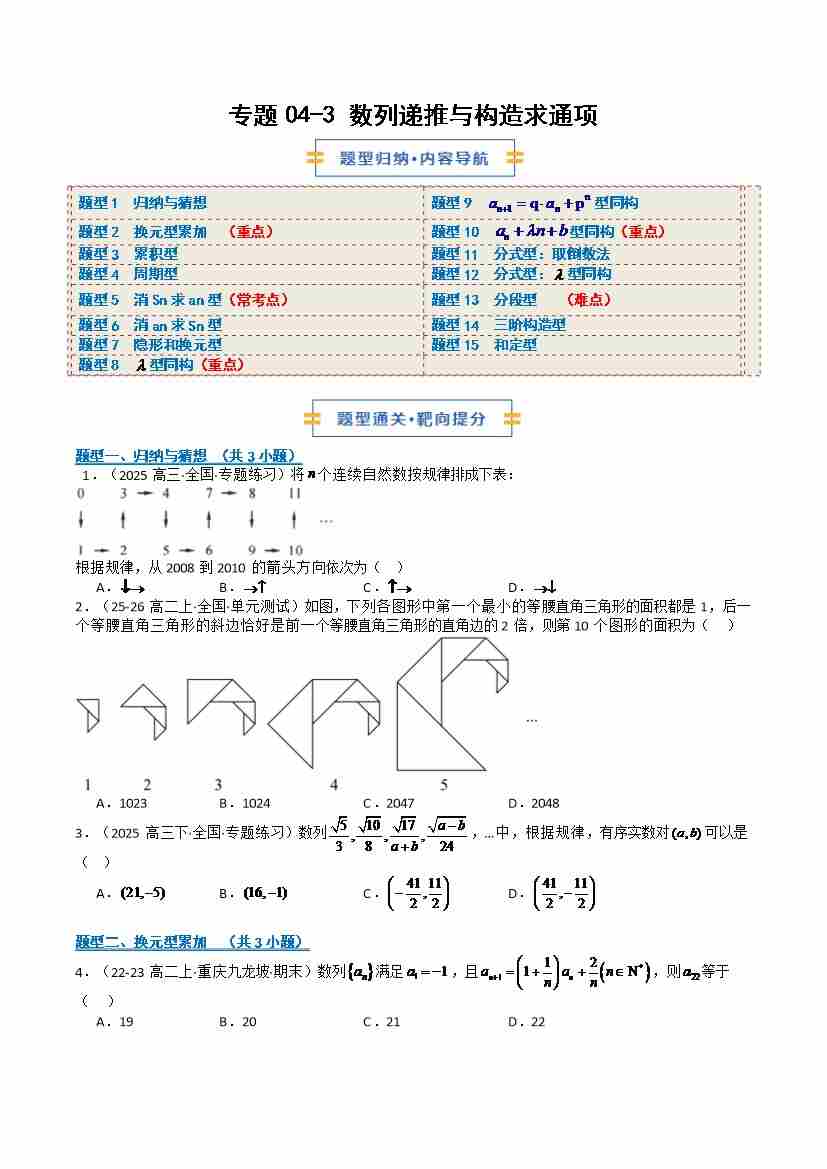 专题4-3 数列递推与构造求通项(期末复习专项训练)(原卷版)
