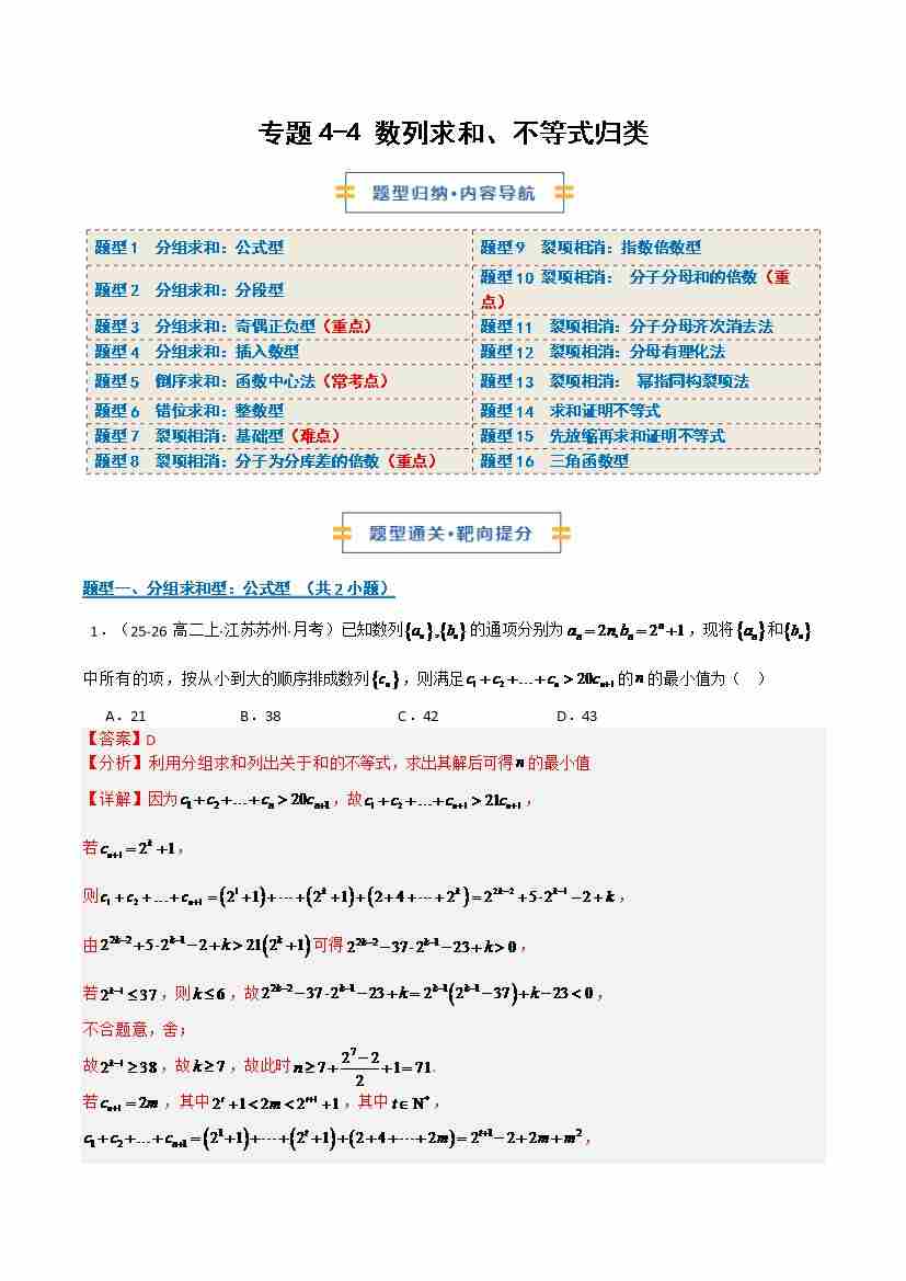 专题4-4 数列求和、不等式归类(期末复习专项训练)(解析版)