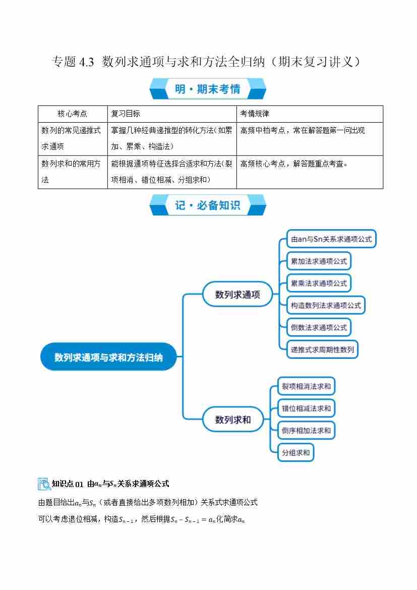 专题4.3 数列求通项与求和方法全归纳(期末复习讲义)原卷版