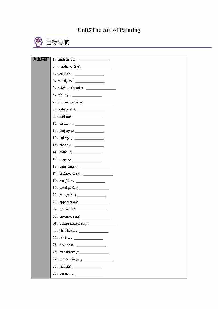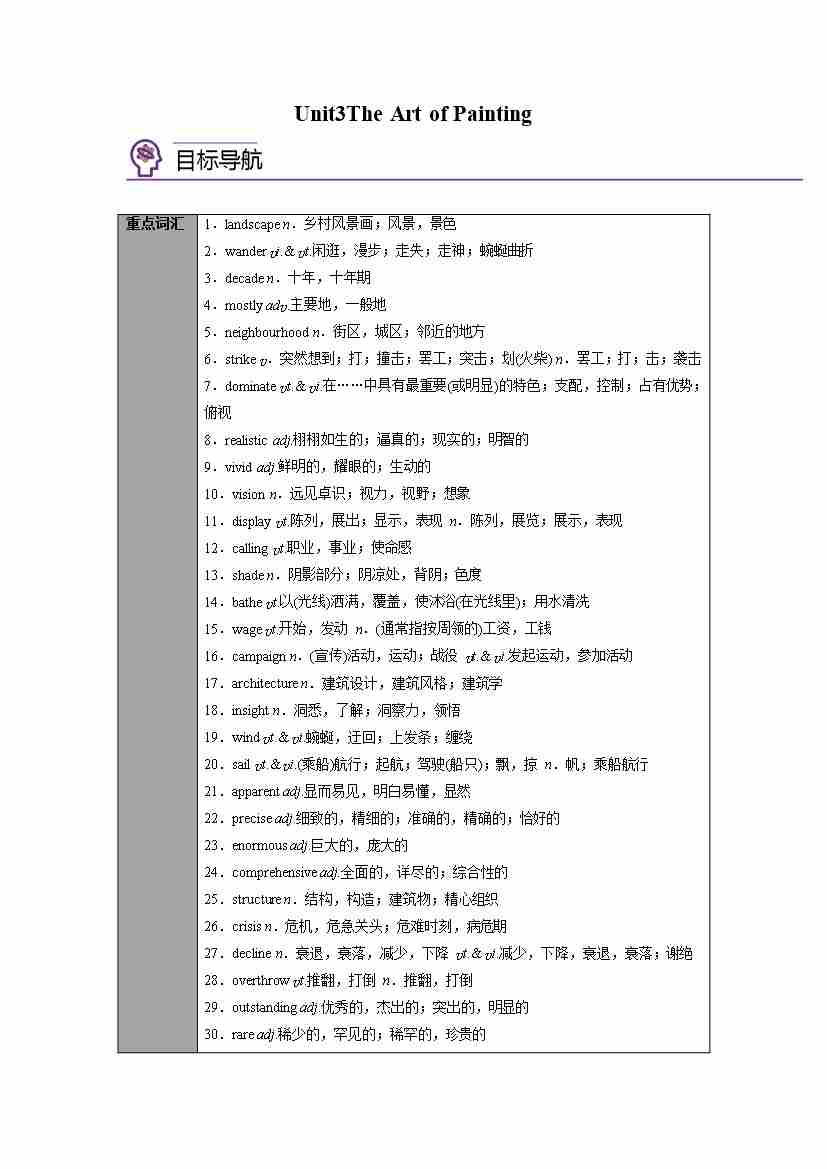 选择性必修第一册 Unit3 The Art of Painting(学生版)