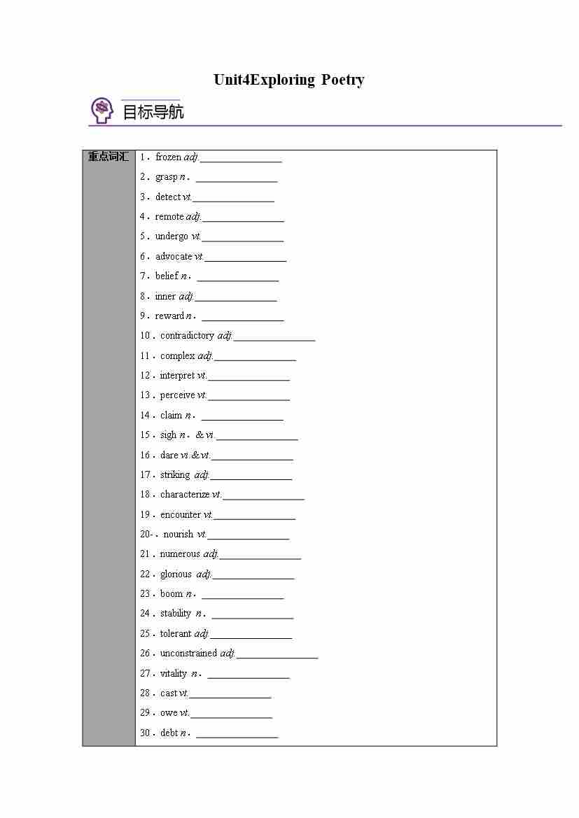 选择性必修第一册 Unit4 Exploring Poetry(学生版)