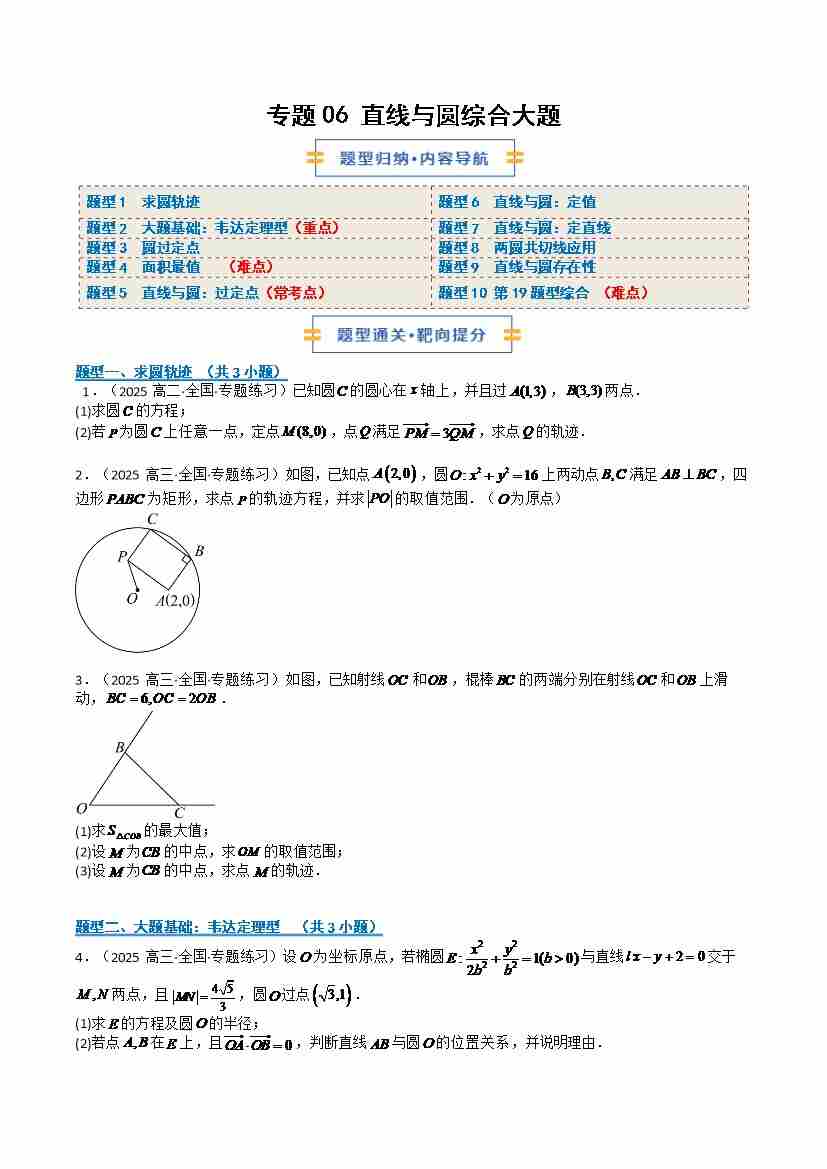 专题06 直线与圆综合大题(期中专项训练)(学生版)