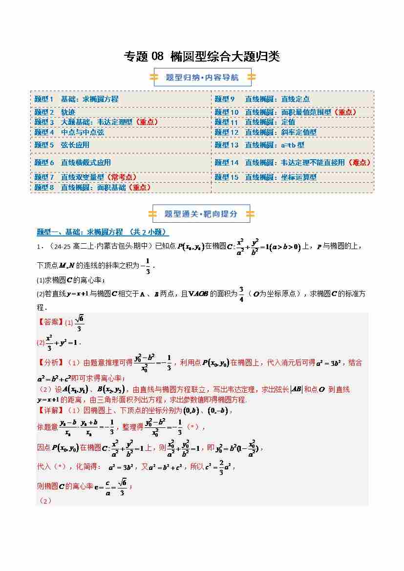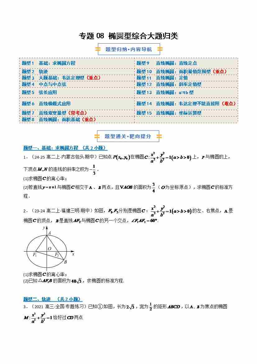 专题08 椭圆型综合大题归类(期中专项训练)(学生版)