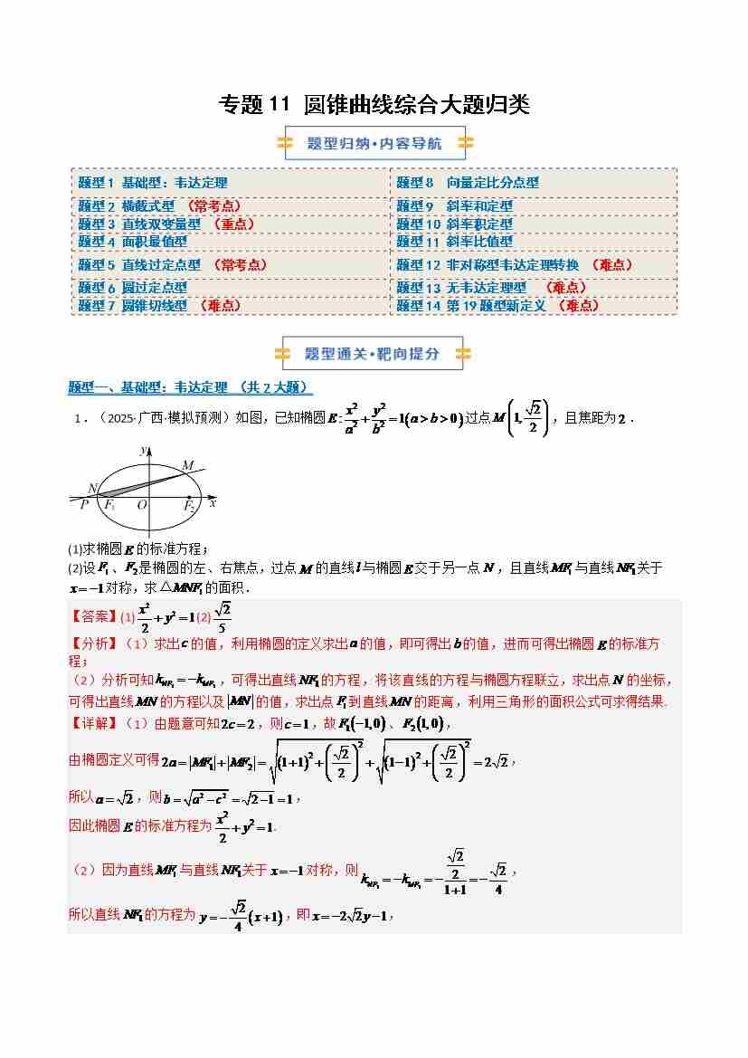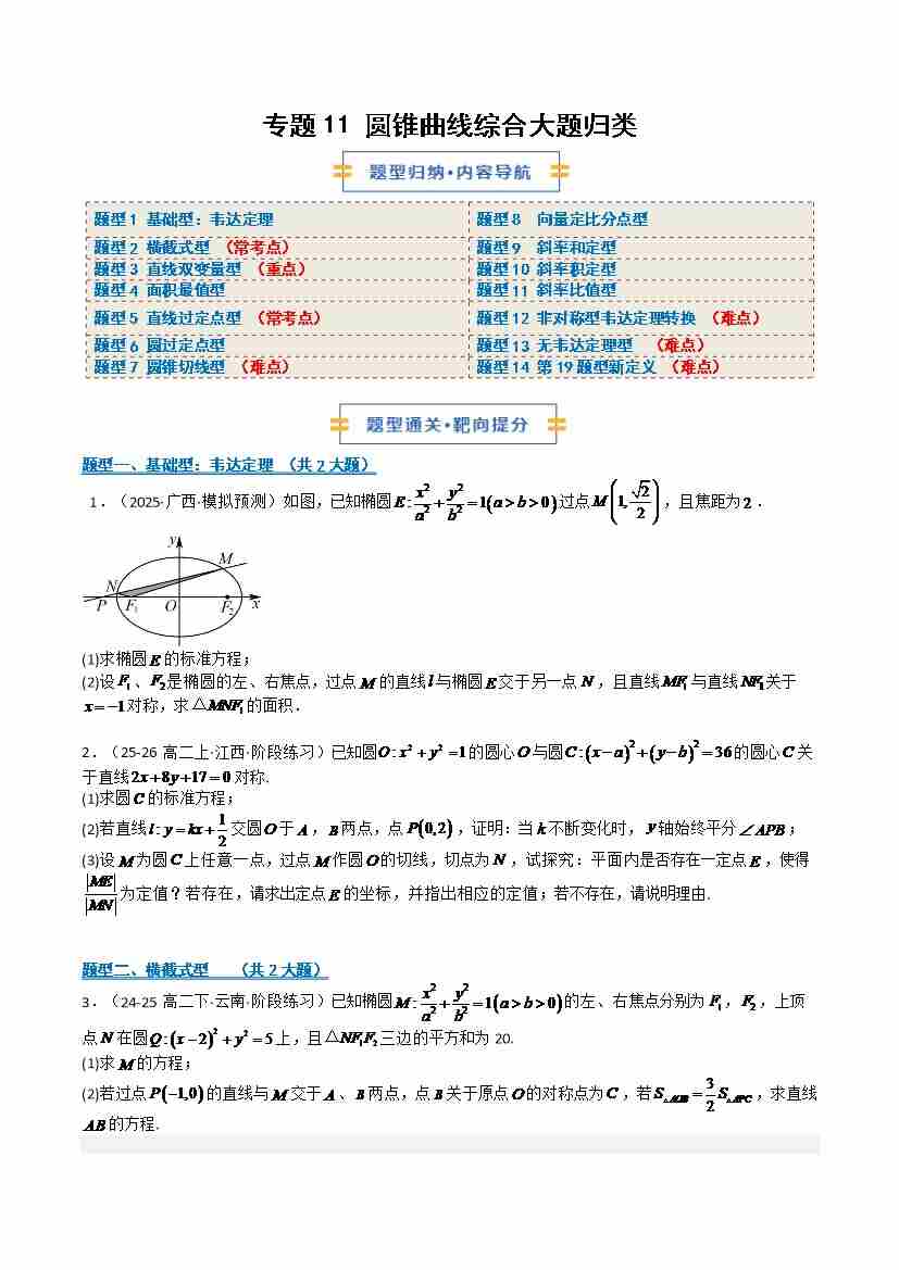 专题11 圆锥曲线综合大题归类(期中专项训练)(学生版)