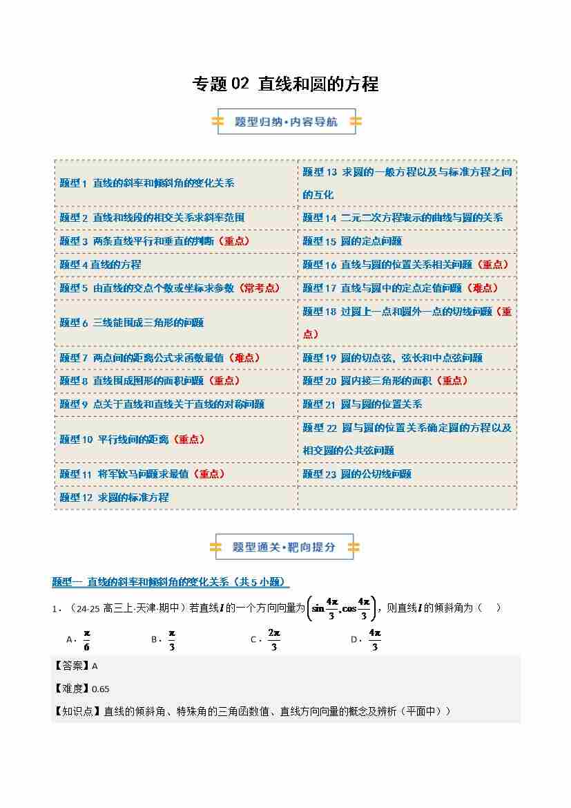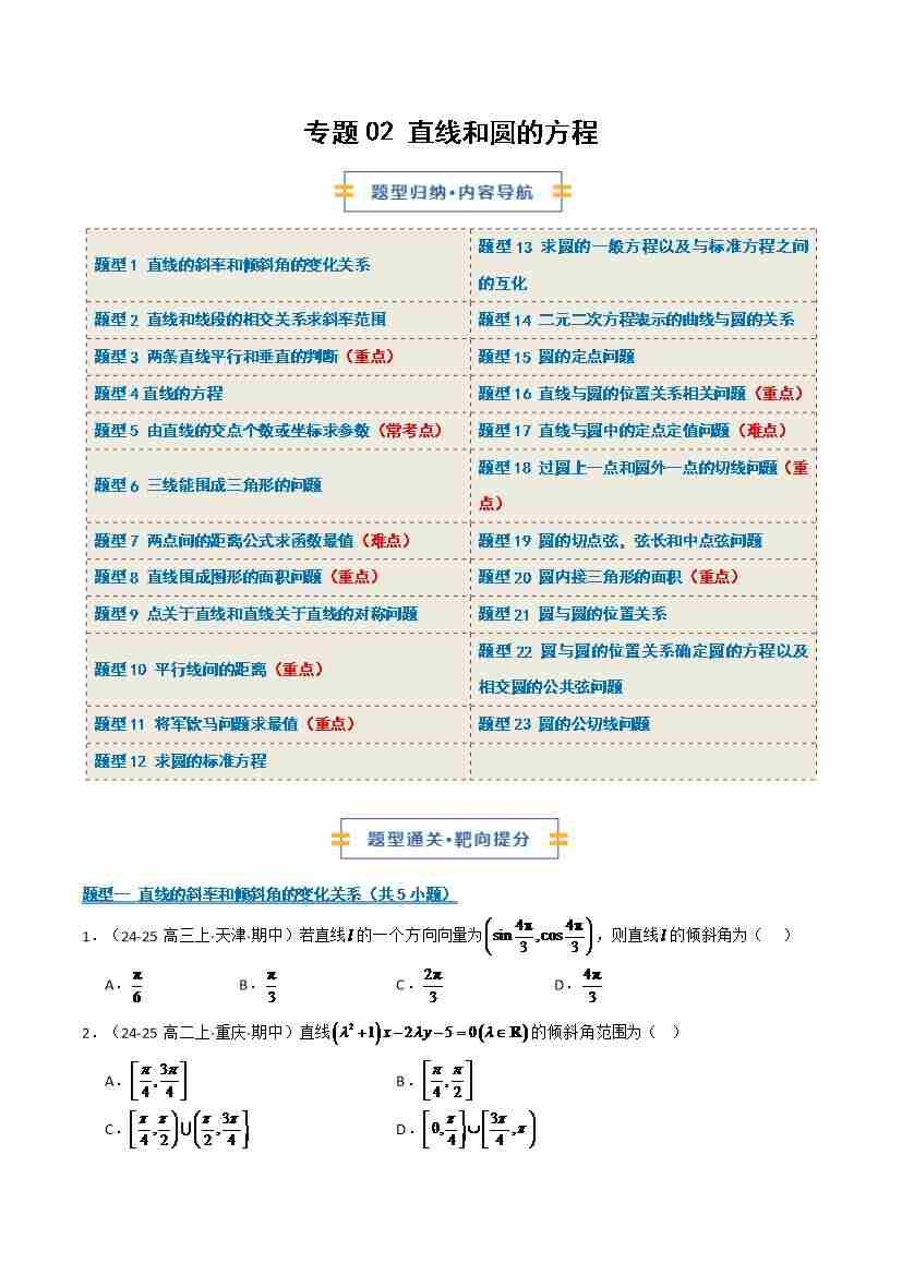 综合专题02 直线和圆的方程(期中专项训练)(学生版)