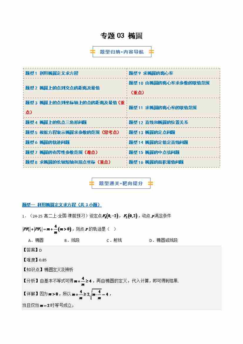 综合专题03 椭圆(期中专项训练)(教师版)