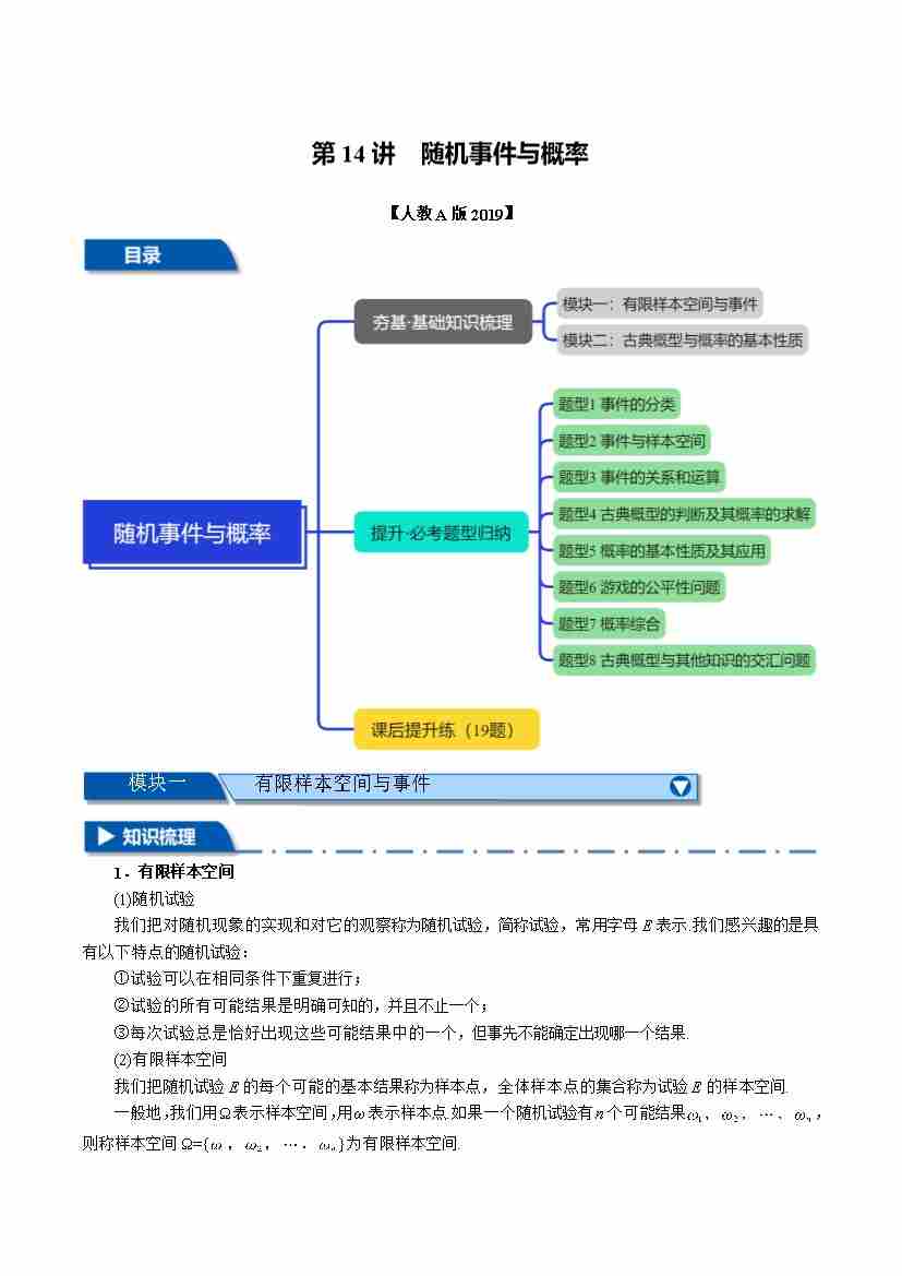 第14讲 随机事件与概率(春季讲义)(人教A版2019必修第二册)(学生版)
