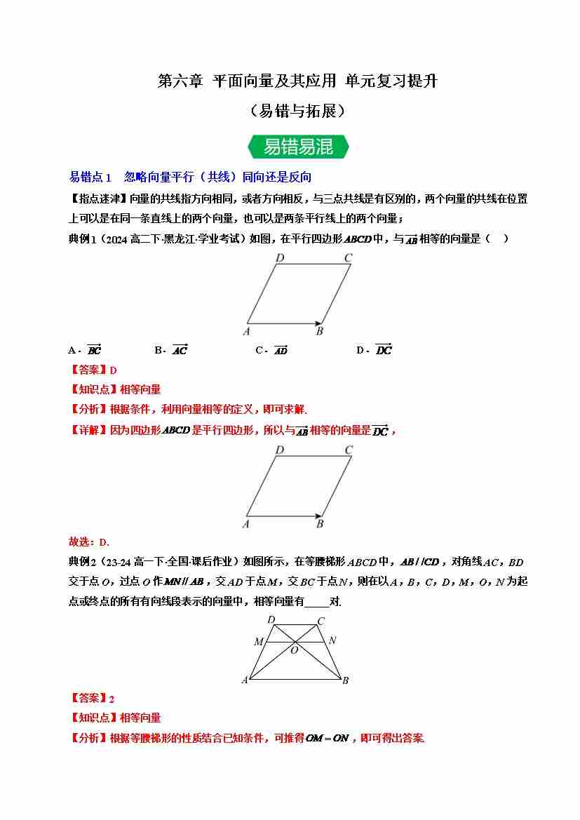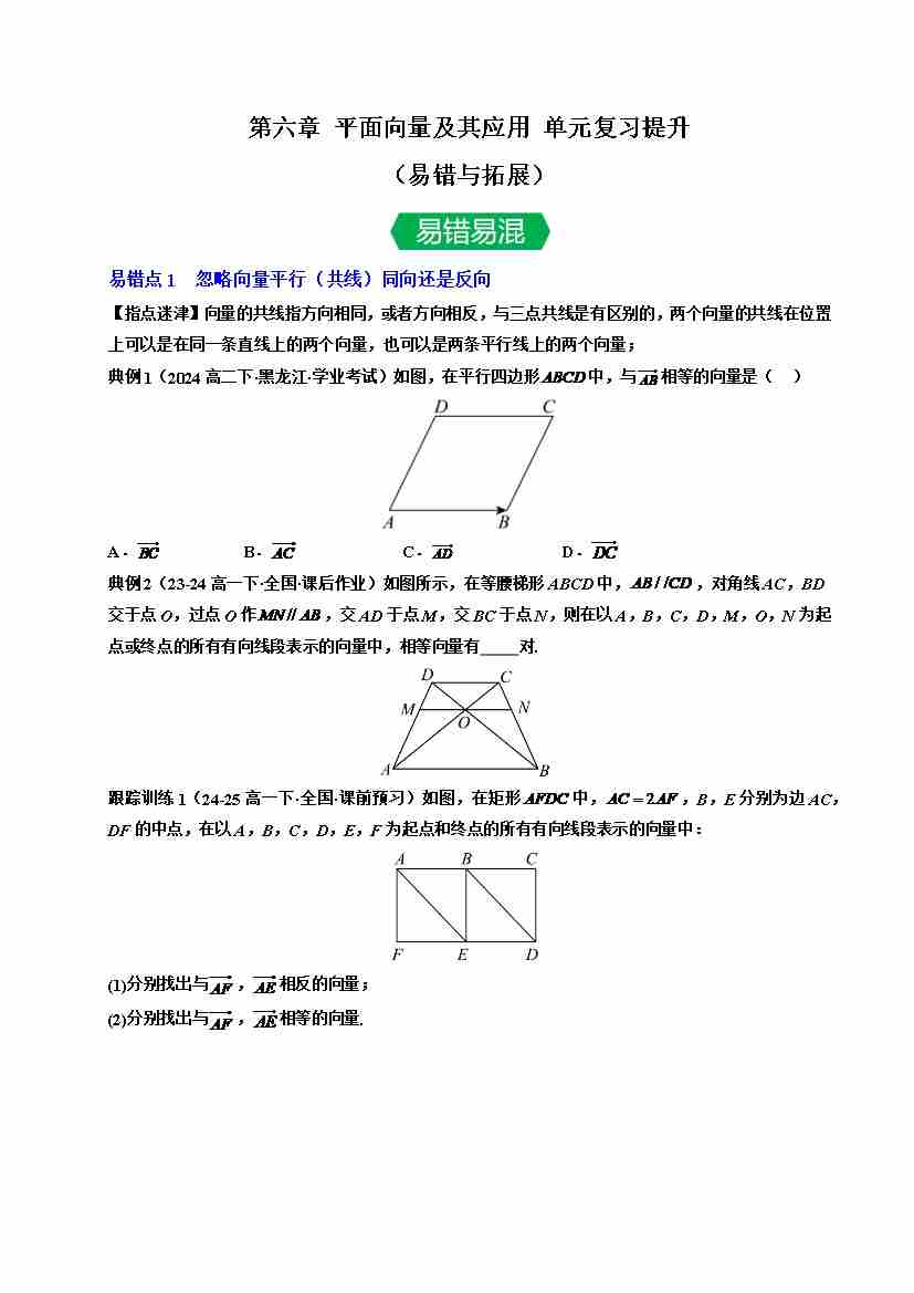 第六章 平面向量及其应用 单元复习提升(7大易错与4大拓展)(学生版)