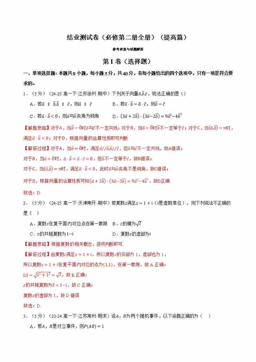 结业测试卷(必修第二册全册)(提高篇)(人教A版2019必修第二册)(教师版)