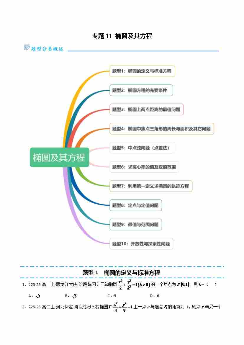 专题11 椭圆及其方程(十大题型精练)(学生版)