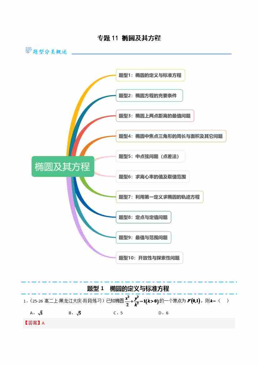 专题11 椭圆及其方程(十大题型精练)(教师版)