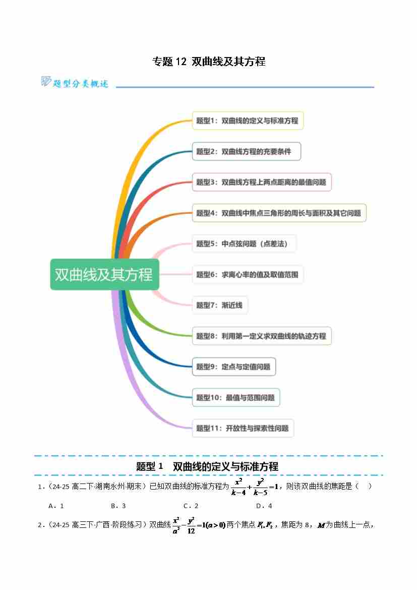 专题12 双曲线及其方程(九大考点精讲)(学生版)