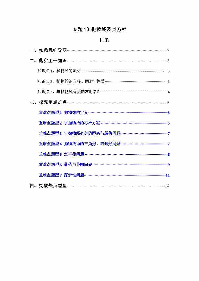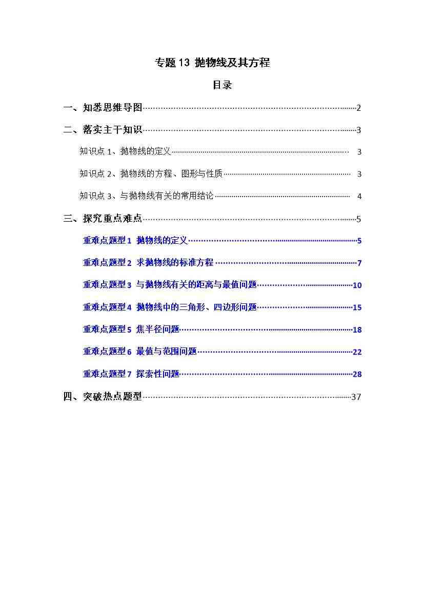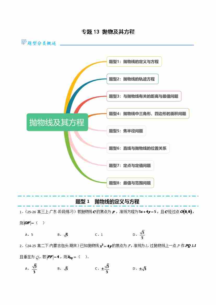 专题13 抛物线及其方程(七大考点精讲)(学生版)