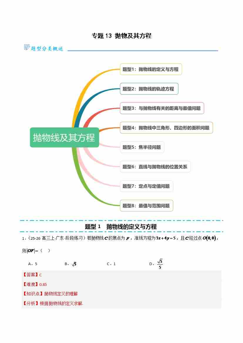 专题13 抛物线及其方程(七大考点精讲)(教师版)