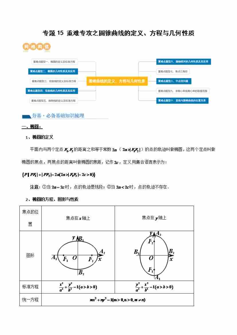 专题15 重难专攻之 圆锥曲线的定义、方程与几何性质(八大重难点题型)(解析版)