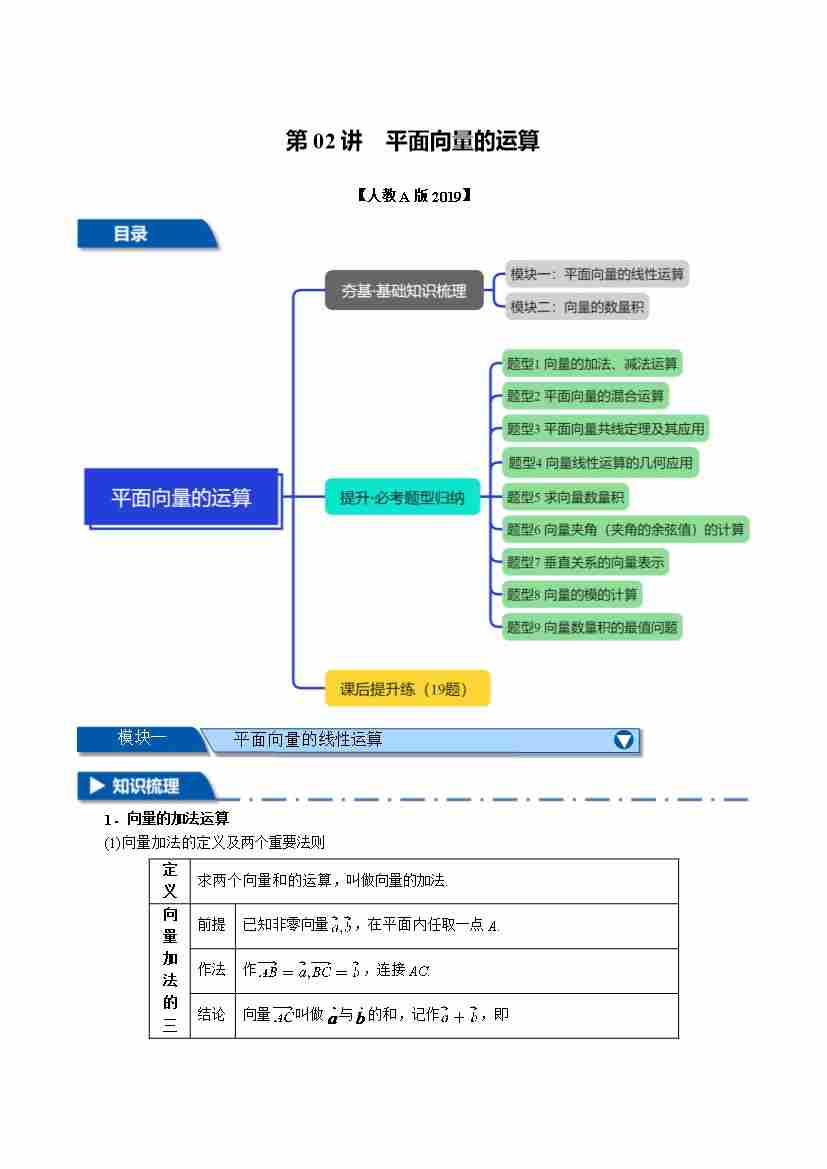 第02讲 平面向量的运算(春季讲义)(人教A版2019必修第二册)(学生版)