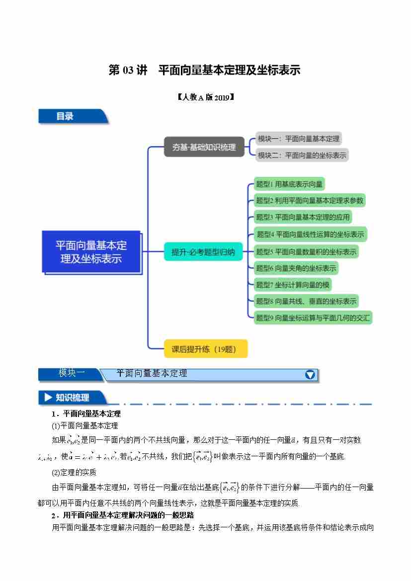 第03讲 平面向量基本定理及坐标表示(春季讲义)(人教A版2019必修第二册)(学生版)