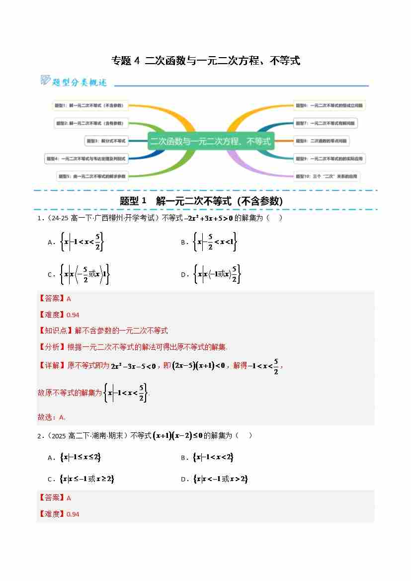 专题04 二次函数与一元二次方程、不等式(十大题型精练)教师版