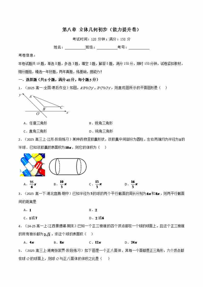 第八章 立体几何初步(能力提升卷)(人教A版2019必修第二册)(学生版)