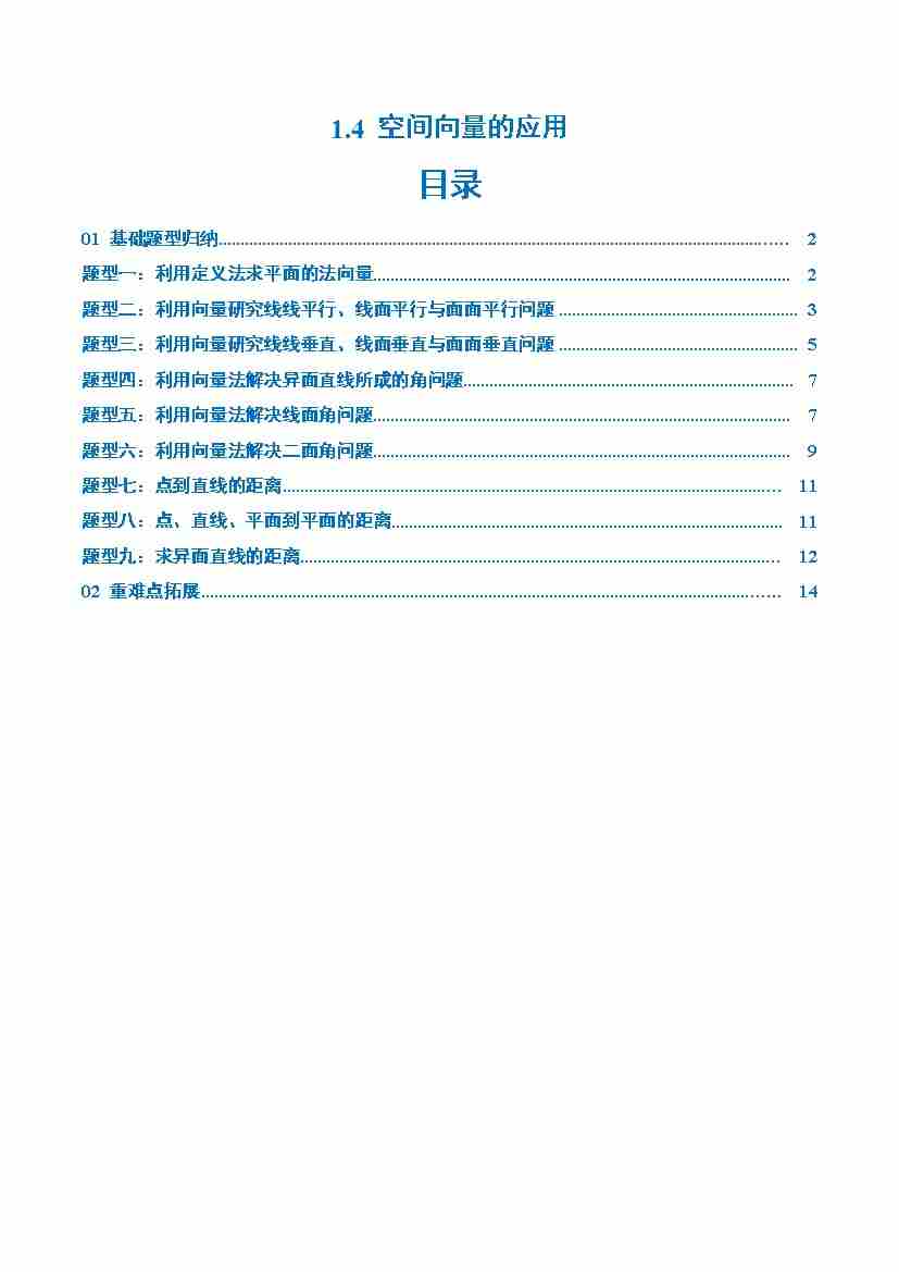 1.4 空间向量的应用(思维导图+5大知识点+9大题型)(讲义)(学生版)