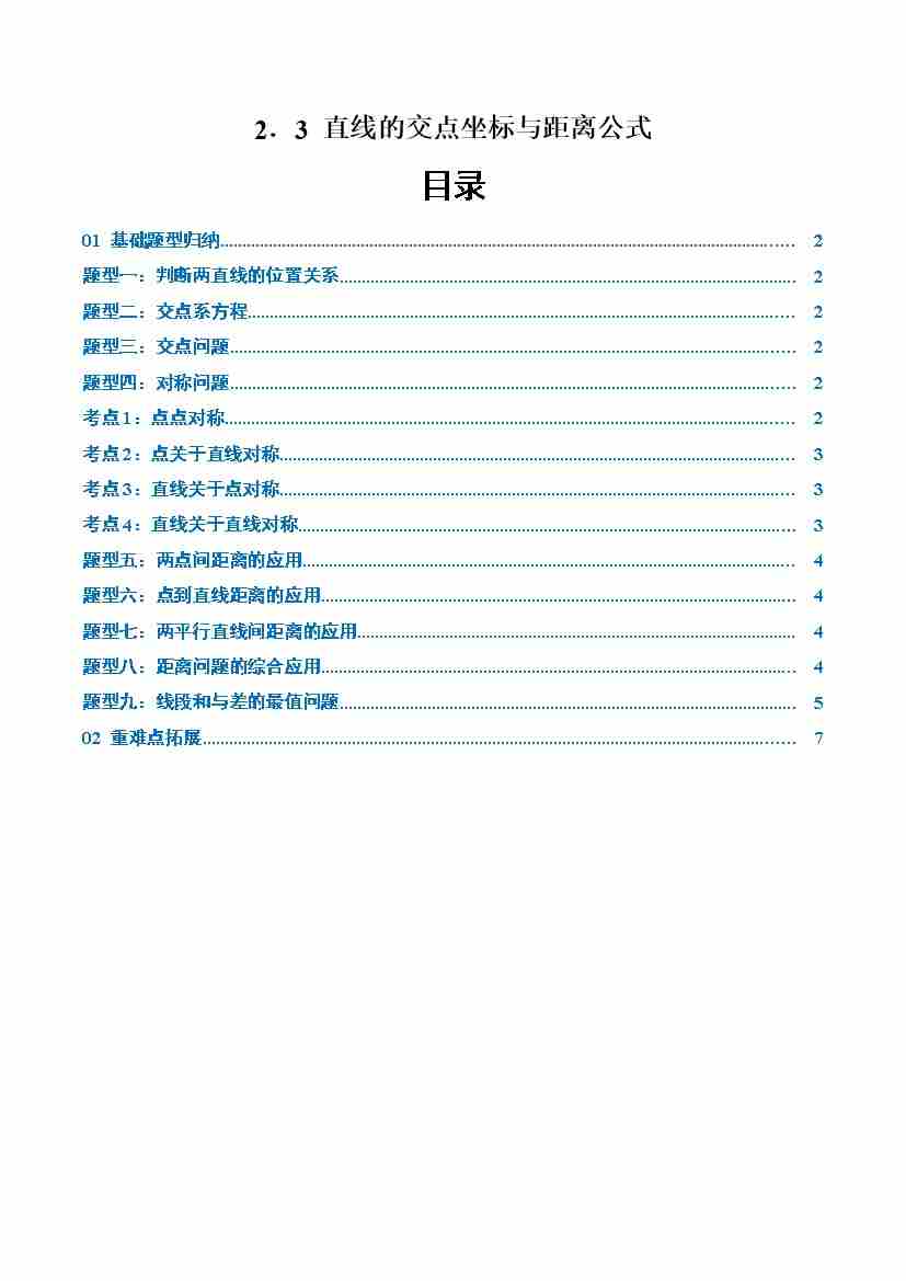 2.3 直线的交点坐标与距离公式(9大题型)(精练)(原卷版)