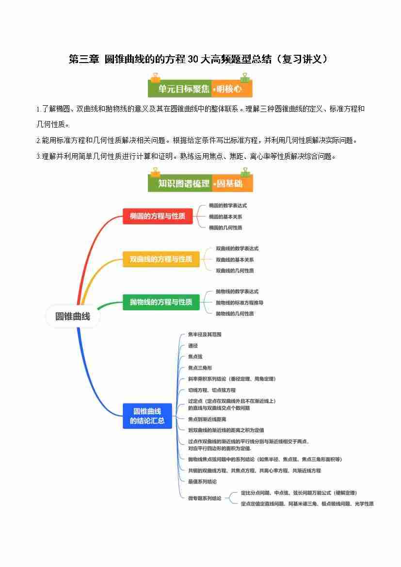 第三章 圆锥曲线的方程30大高频题型总结(复习讲义)(学生版)
