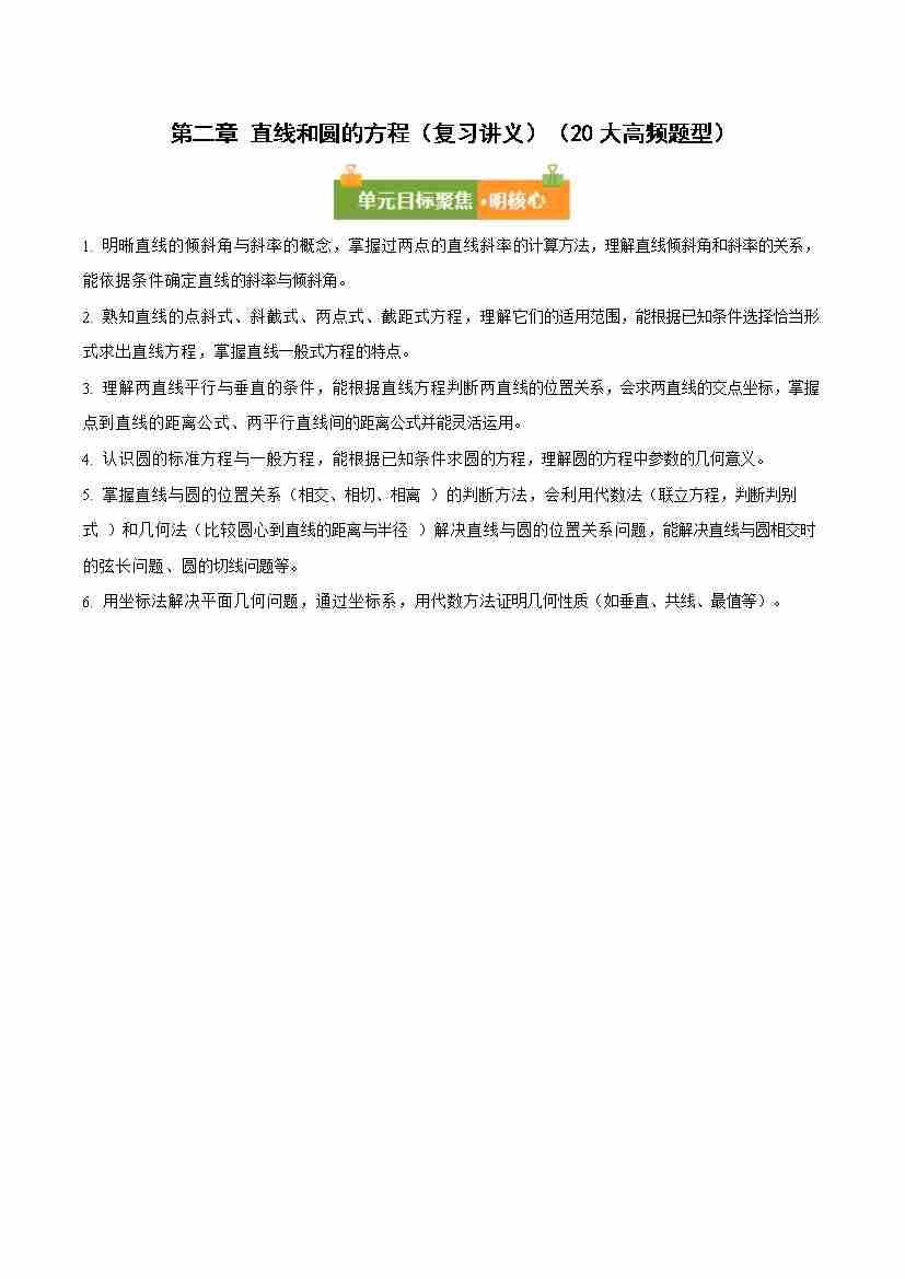 第二章 直线和圆的方程20大高频题型总结(复习讲义)(学生版)