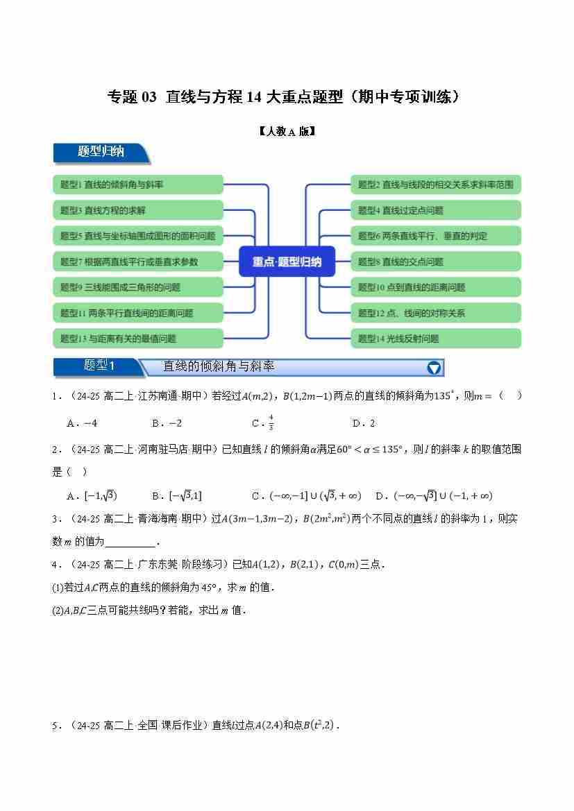 专题03 直线与方程14大重点题型(举一反三期中专项训练)(学生版)