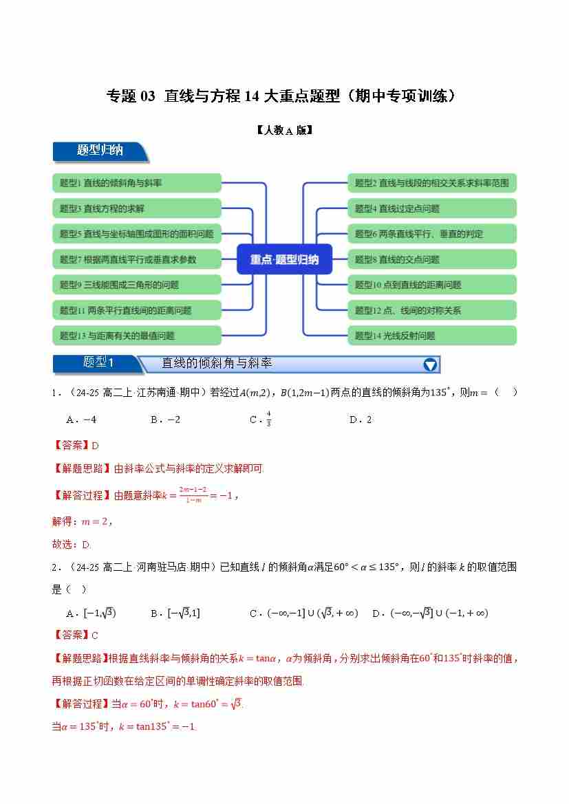专题03 直线与方程14大重点题型(举一反三期中专项训练)(教师版)